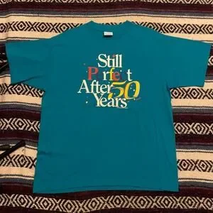 * Vintage 90s Single Stitch Peacock Papers Boston big center text graphic stull perfect after 50 years funny teal blue dad grandpa mom grandma shirt