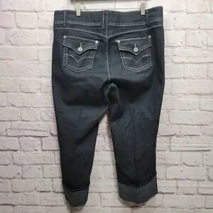 Y2K Angels Jeans Capri Cuffed Denim Womens 20 Triple Button Casual Dark Wash