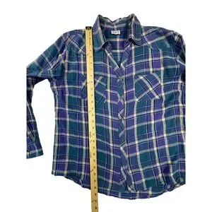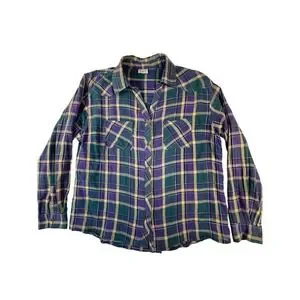 Keren Hart Plaid Button Down Shirt Womens L Purple Teal Western Flannel