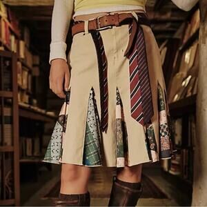 Free People Dark Academia Preppy Menswear Peirrot Scarf Midi Skirt Size 8