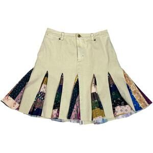So cool and one-of-a-kind, this bold skirt features godet seaming at the hem with vintage-inspired floral paneling inside for a head-turning touch.