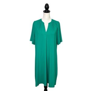 NWT J Jill Wearever Collection Shirred Dress Size L Relaxed A-Line Green Travel