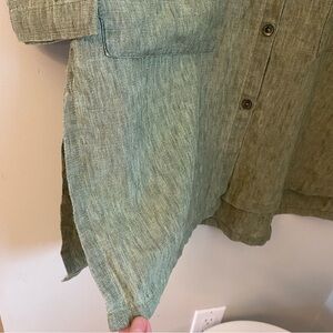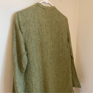 🏷️ Spring, Summer, Travel, Resort Wear, Cruise, Linen, Sustainable, Mandarin Collar, Button Down, Button Up, Shirt Jacket, Pockets, Relaxed Fit, Oversized, Minimalist, Boho, Layering, Long Sleeve, Tunic Length, Olive Green, Army Green, Moss Green, Earthy, Khaki