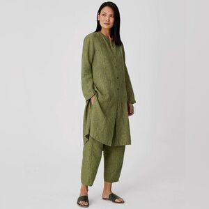 Eileen Fisher Washed Organic Linen Delave Long Shirt, Easy Fit, Knee Length, XXS