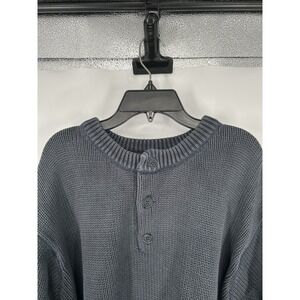 L.L.Bean Henley Sweater Men 2XLT Black Knit Ribbed Hem & Cuff Cotton Long Sleeve