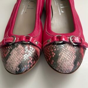 AGL Attilio Giusti Leombruni Monika Pink Leather snakeskin cap toe ballet flats.