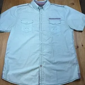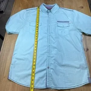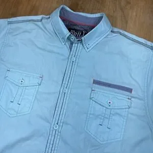 Drill Clothing Company Teal Short Sleeve Collar Button Up Shirt Sz XL Western