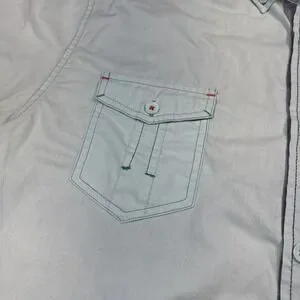 The Drill Clothing Company Teal Short Sleeve Collar Button Up Shirt in size XL is a versatile piece suitable for various occasions such as travel, parties, casual outings, and workwear. Made from a blend of polyester and cotton, this woven shirt features a button-down collar, pockets, and is suitable for all seasons. The solid teal color adds a pop to the western-themed design, making it a stylish choice for men who appreciate a blend of classic and modern styles. This shirt is machine washable and designed for a regular fit, offering comfort and convenience for everyday wear.