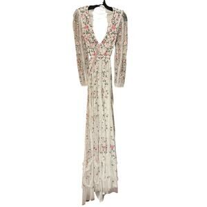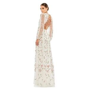 Mac Duggal NEW Size 0 Style 70159 Ivory Multi Floral Cutout Waist Lace-Up Back Dress Gown