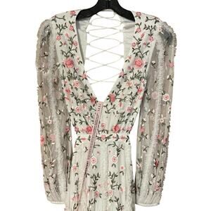 Mac Duggal NEW Size 0 70159 Ivory Multi Floral Cutout Waist Lace-Up Back Dress