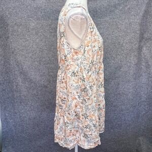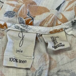 Joie 100% Linen Floral Tiered V-Neck Sleeveless Mini Dress Orange Grey Large