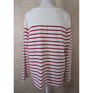 Talbots Bateau Neck Tee Women’s XL White Red Stripe Long Sleeve Preppy