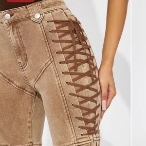 Fashion Nova Tan Lace-Up Pants