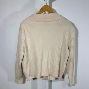 Bleyé Italy Cream Ribbed Wool Blend Cardigan Cropped V Neck Old Money Minimalist
