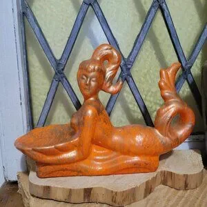 This vintage 1980s ceramic Mermaid can be used as a soap or trinket dish, or just as a beautiful decor accent. With her kitsch aura, she will look stunning in any bathroom. Like every fairy figurine, this mermaid comes to life at night. In a fit of insomnia, you may hear her singing and splashing around... 🧚♂️😜
