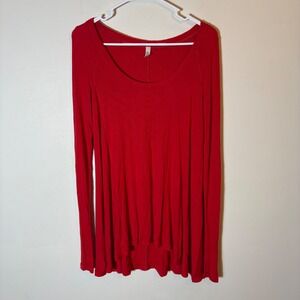 Keywords: Free People, Red top, Long sleeve top, High low hem, Ribbed knit, Casual top, Bohemian style, Comfortable top, Everyday top, Swing top, Red long sleeve, Size S, trapeze