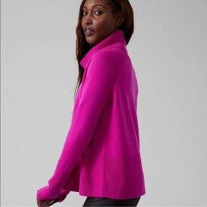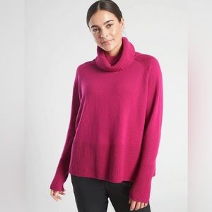 80% Wool 20% Cashmere. Vibrant pink cowl neck sweater. Soft and cozy. Perfect for layering. I’m closet cleaning.