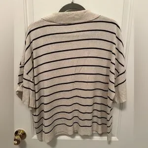 Max Studio Cream and Black Striped V-Neck Shirt