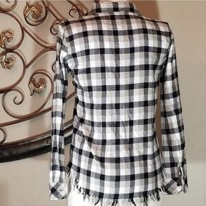 Current Elliott Buffalo Plaid Frayed Hem Button Up Black Gray Beige Shirt Size 0