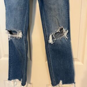 Stylish high rise jeans with a distressed look. Perfect for everyday wear.