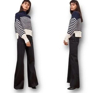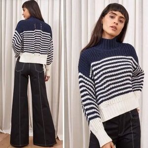 La Ligne Bretagne Chunky Striped Relaxed Merino Sweater Navy White Size S