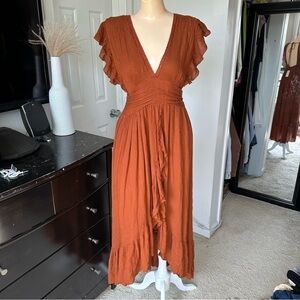 FREE PEOPLE ADA FLUTTER SLEEVE HIGH LOW DRESS