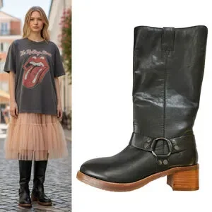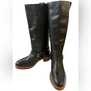 Frye Camryn Tall Shaft Harness Boots Black Leather in Sz 9