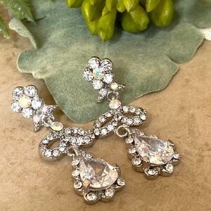 Floral tear earrings rhinestone embellished NWT