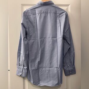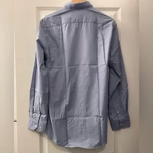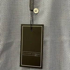 Stylish blue dress shirt by Vittorio. Perfect for any occasion. Features a sharp collar and button-up front.