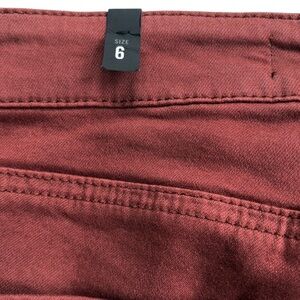 Worn once; Reddish brown stretchy cotton/rayon/polyester/spandex; 30” inseam; 10” rise; soft, lived-in feel; smoke free home. c