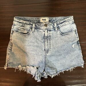 PAIGE Women's Distressed Light Blue Jean Shorts