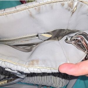please note the rubbing on the interior and the peeling on one of the handles, which is reflected in the price since this is a $1,600 bag.