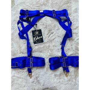 Honey Birdette KUKURO💙 Electric Blue Bondage Garter Suspender Belt XXS