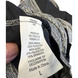 These women's size Large shorts feature a lightweight heather gray outer layer and a supportive black inner compression short for a flattering, flexible fit.