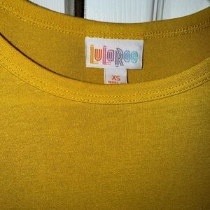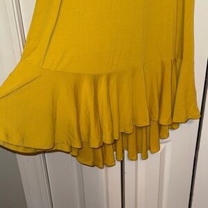 lularoe dress, maurine dress, yellow dress, mustard dress, golden dress, lace sleeve dress, bell sleeve dress, midi dress, high low dress, ruffle dress, fall dress, spring dress, work dress, business casual, office dress, flowy dress, boho dress, xs dress, extra small, casual dress, boutique dress, teacher outfit, church dress, wedding guest dress
