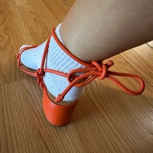 Schutz Nicky Mid Nappa Flame Orange Strappy Leather Sandal Heels right shoe only