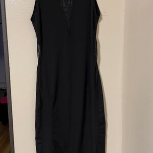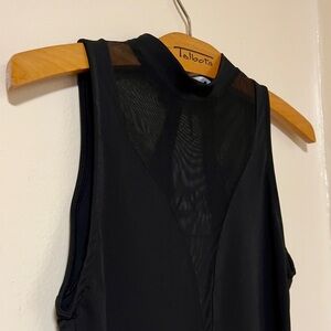 Black Bodycon Tule Midi Sleeveless Dress with high round collar. Tonal matching fabrics. Perfect for a date night or a casual evening. 🖤✨