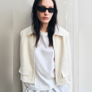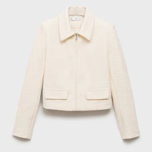 Cotton blend fabric. Straight design. Notched lapel collar. Long sleeves. Two side pockets with flaps. Zip fastening on the front section. Inner lining.