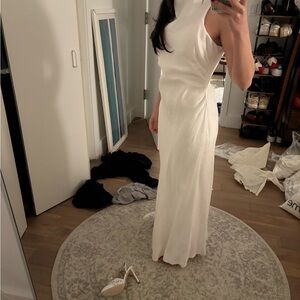 Chic white maxi dress with sleeveless design. Perfect for elegant occasions. Linen is in perfect condition