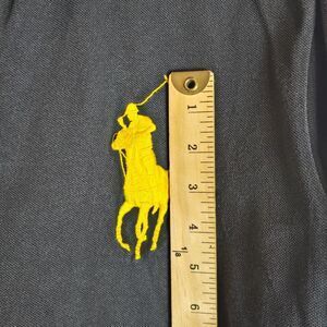 The Polo Ralph Lauren Big Pony #3 Black Short Sleeve Rugby Shirt is a stylish and versatile button-up shirt with a collared neckline and embroidered logo accents. Made from cotton fabric, this shirt is perfect for casual, workwear, or party occasions year-round. The custom fit in size XL ensures a comfortable and flattering fit, showcasing the iconic Polo Ralph Lauren character and theme. Designed by the renowned brand Polo Ralph Lauren, this shirt is a classic and timeless addition to any man's wardrobe.