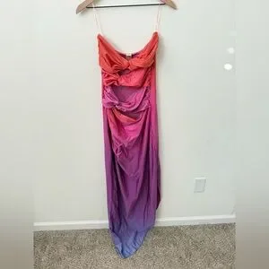 BAOBAB Vera Orange Pink Purple Glossy Cut Out Maxi Dress Size M