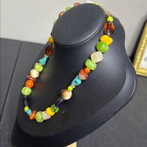 Mixed Media Turquoise Beaded Southwestern Boho Necklace
