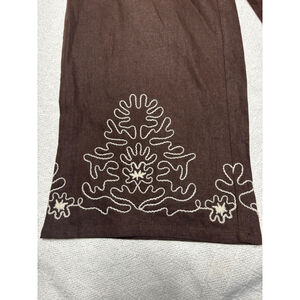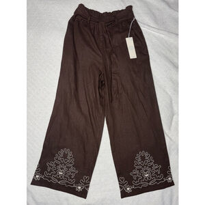 NWT Calypso St Barth Embroidered Brown Linen Blend Wide Leg Pants Size Small