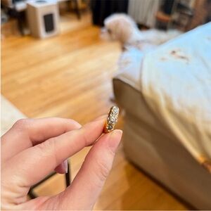 Stylish Fendi cuff featuring a gold band and silver detailing. Presented in a chic yellow box.