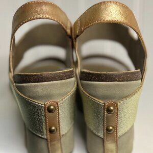 OTBT Gold Bushnell Leather Wedge - Women, Size: 10 M