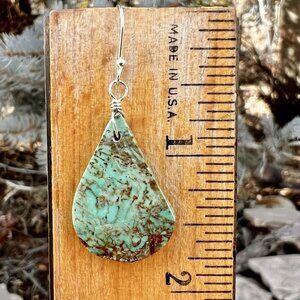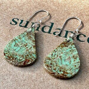 Sundance NEW $158 Turquoise Slab Sterling Silver Teardrop Handmade Earrings