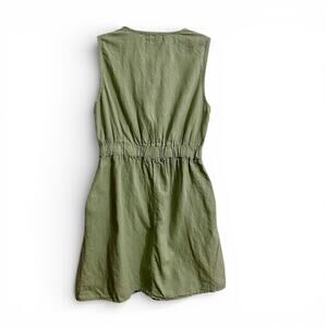 Francesca Bettini Dress Large Linen Blend Cotton Lined Green Italy Made Pockets