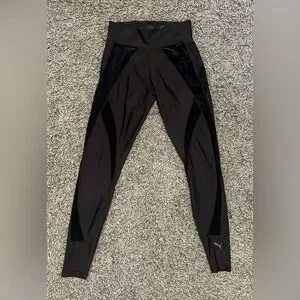 Puma “Explosive Tights” | Black Leggings w/ Velvet Side Accents | Size Medium