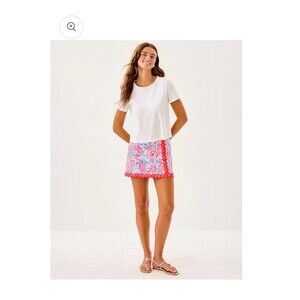 Lilly Pulitzer Michelina Mini Skort brings instant vacation energy to your everyday plans. The “Lil Sun Sea Sand” geometric print pops in pink and blue on Resort White, finished with scalloped eyelet trim for a polished, playful look. Built-in shorts keep you comfortable and covered, while the back zip gives a smooth fit. Wear it for beach days, resort dinners, cruises, travel, and casual summer outings. Pre-owned. 1 time wear. Hand washed. Rack dried. Perfect condition.