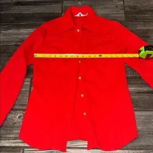 Vibrant Red Casual Button Down Shirt 60s 70s small